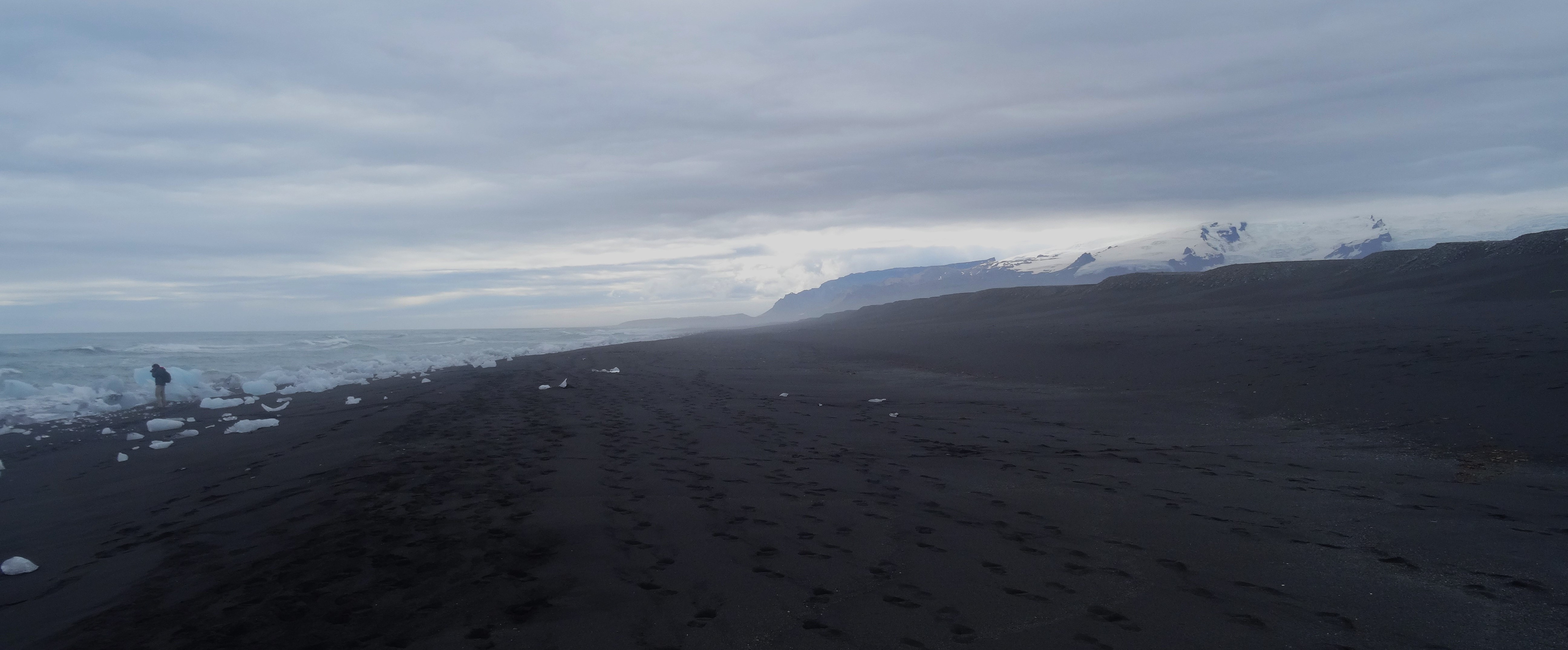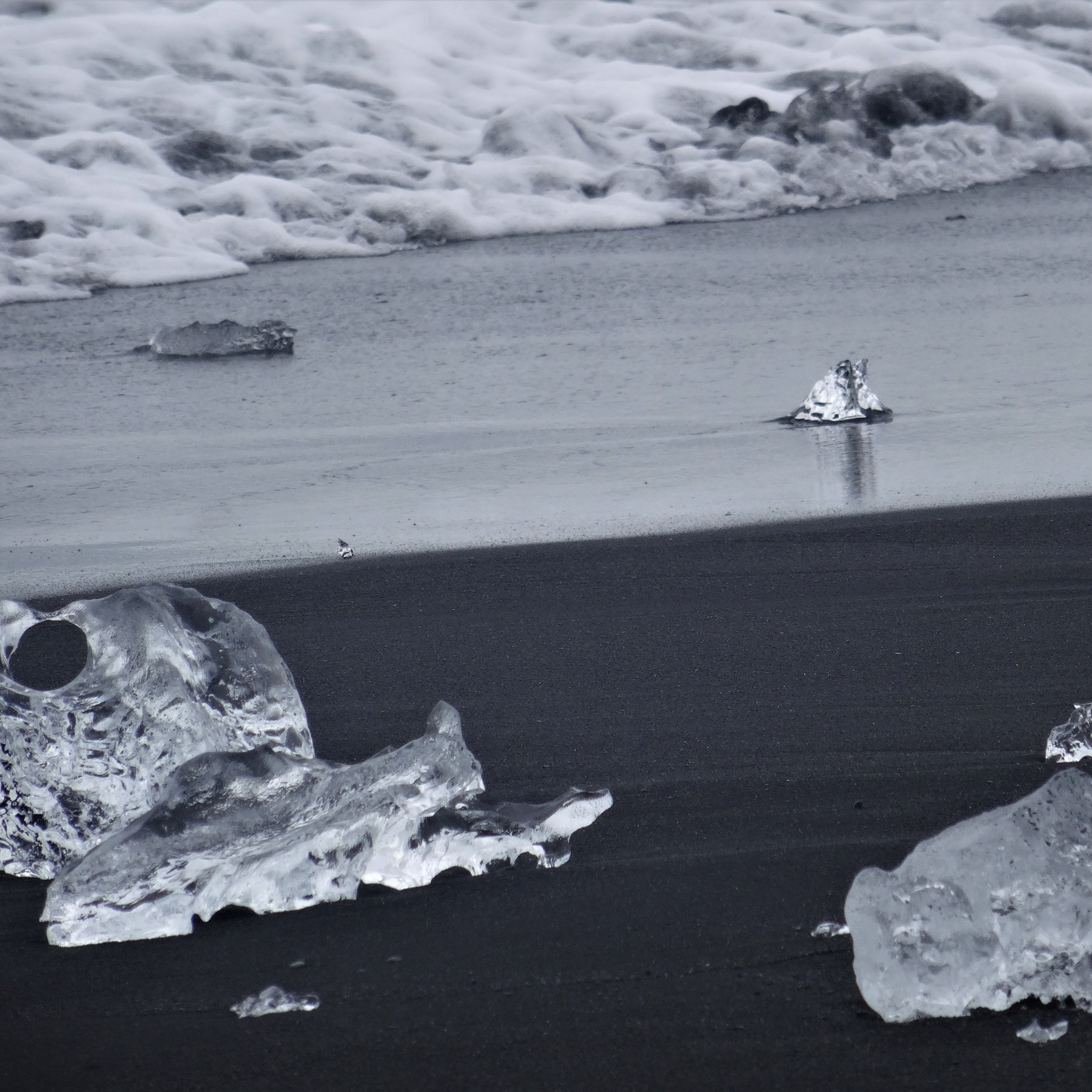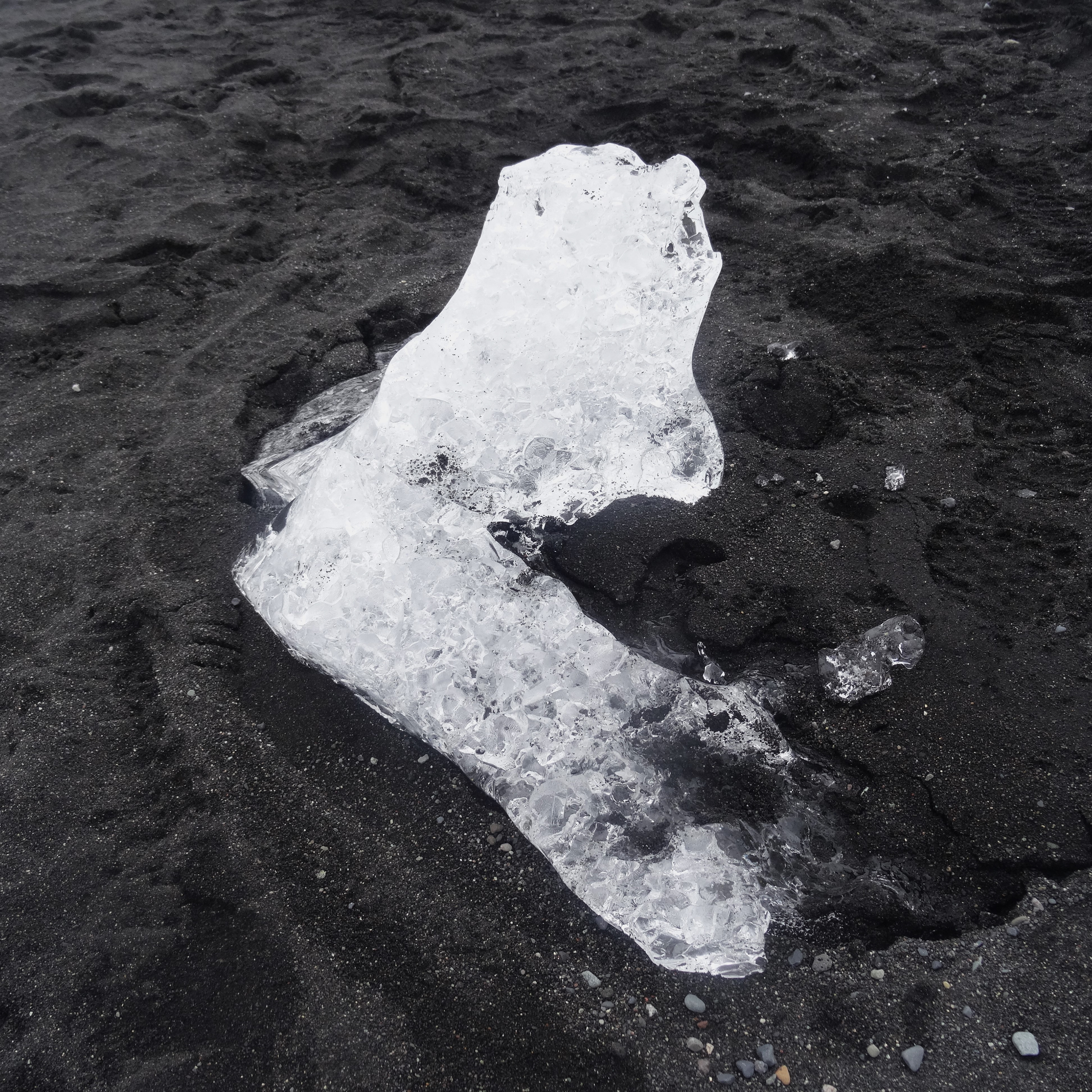 En juillet 2019, mon voyage en Islande m’emmène sur la plage de diamants du Jökulsarlon, ce glacier dont d’immenses morceaux se détachent jusqu’à glisser dans la mer, avant que les plus petits morceaux viennent s’échouer sur la plage pour fondre et disparaître, bientôt remplacé par d’autres. De ce lieu transpire un sentiment de mortalité, de cycle et de fatalisme, trois mots représentatifs de notre expérience de vie.